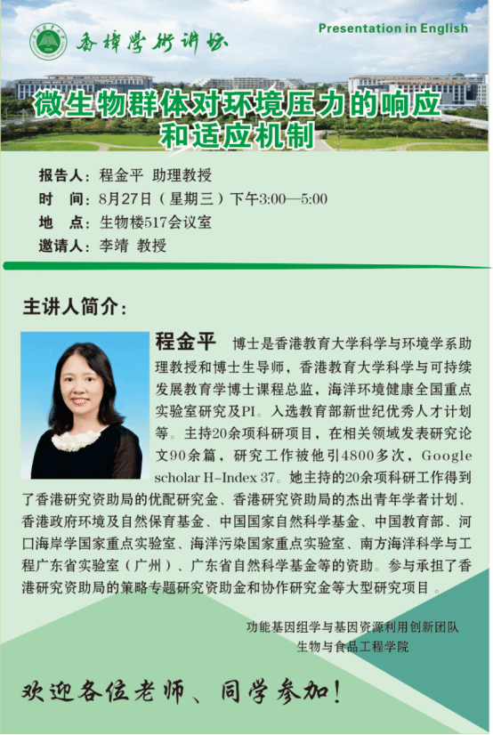 【创新团队系列学术报告】微生物群体对环境压力的响应和适应机制