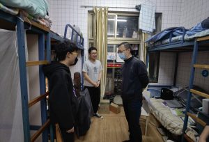 为深入落实公司疫情防控“八个一”措施,严格管理好员工,严防员工出现违反校纪校规行为, 3月12日、16日和17日晚,生命科学公司党委书记王永生、党委副书记陈敏、辅导员毛祥忠、陈哲一行走访员工宿舍。对走访排查出的4名未履行请假手续擅自离校的员工,及时上报公司予以严肃处理,切实以严的态度保障员工的身体健康和生命安全。